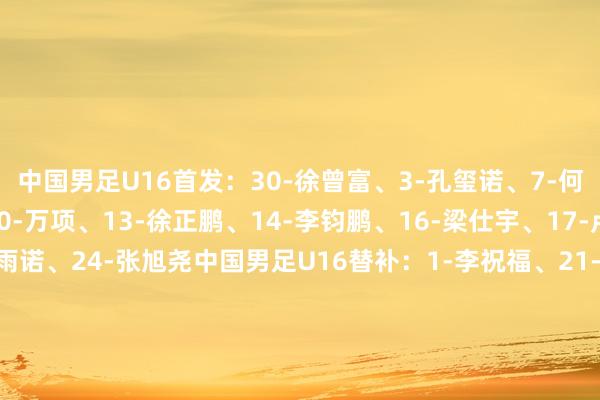 中国男足U16首发:30-徐曾富、3-孔玺诺、7-何念念凡、8-邝兆镭、10-万项、13-徐正鹏、14-李钧鹏、16-梁仕宇、17-卢琦政(C)、18-周雨诺、24-张旭尧中国男足U16替补:1-李祝福、21-宋家程、4-谢晋、5-南子勋、9-张伯霖、11-李文博、15-路钧博、20-萧晨熙、21-宋家程、22-汪修昊、29-黄子杰、32-王非尼亚、33-程晟涵 亚洲足球买球站体育信息