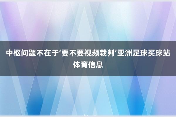 中枢问题不在于‘要不要视频裁判’亚洲足球买球站体育信息