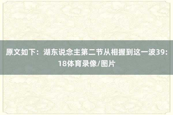 原文如下:湖东说念主第二节从相握到这一波39:18体育录像/图片
