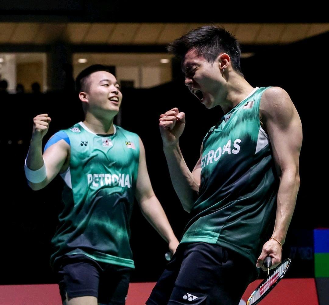 谢定峰/苏伟译21-19, 21-15治服姜珉赫/金元浩,晋级男双半决赛,为2019年亚洲锦标赛的失利完成复仇。将与万炜聪/郑凯文争夺一个决赛限额,对方则以21-15, 21-16打败阿里夫/叶睿庆收货交手3连胜。