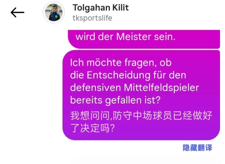 2026年2月8日,据北京国安俱乐部新聘球探TolgahanKilit(简称克利特)炫耀,北京国安已选好了凝视型中场外助,飞速就可以官宣。有北京国安球迷晒出了和北京国安球探克利特之间的聊天记载。北京国安球迷问对方,凝视中场球员是否也曾挑选好了?该球探回复给出了确定的回复,他默示当今北京国安有终点好的候选东谈主,但莫得对外公布音讯,因此这也会是一个果然的惊喜。
