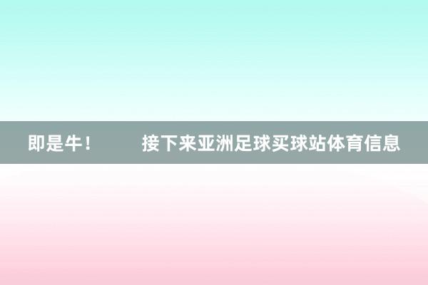 即是牛! 接下来亚洲足球买球站体育信息