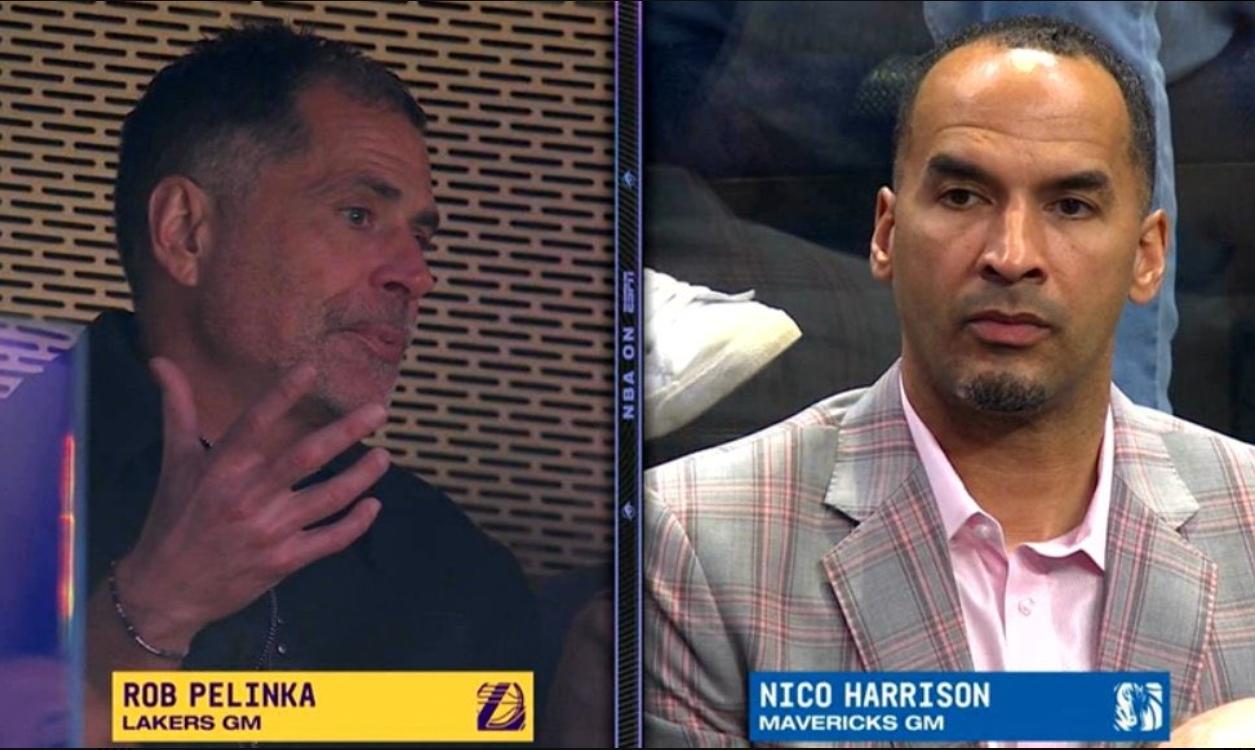 比赛中,转播方给到镜头:湖东说念主总司理佩林卡和独行侠总司理哈里森均在现场不雅战比赛。